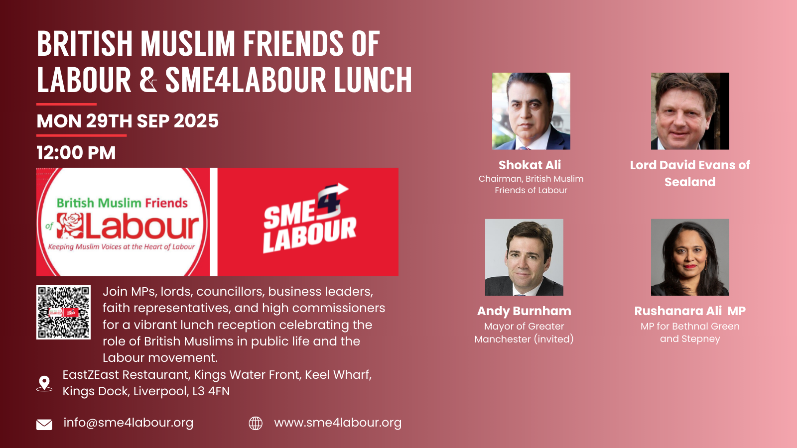 Tickets are free, but booking is required via https://www.sme4labour.org/british_muslim_friends_of_labour_sme4labour_lunch