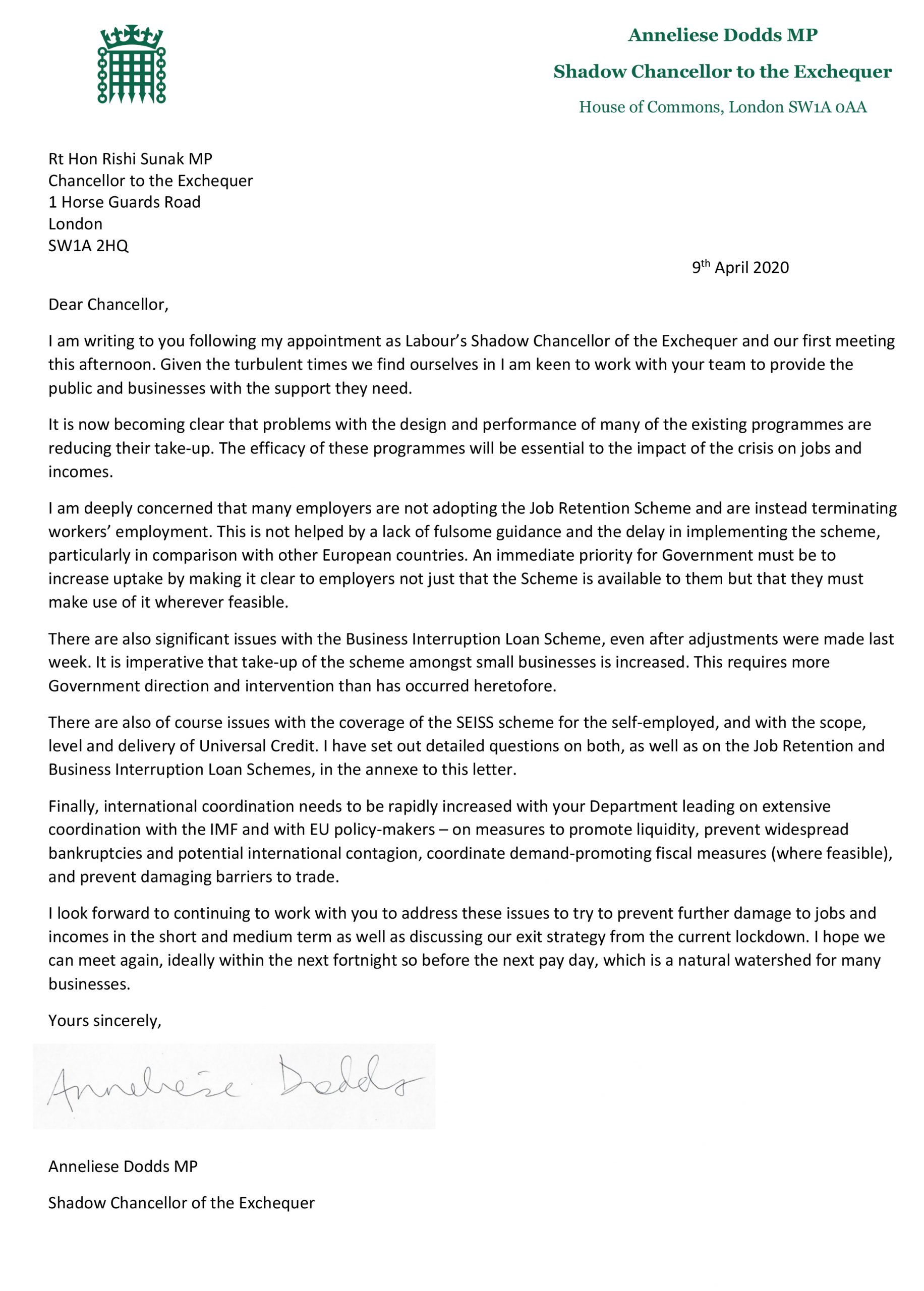 Shadow Chancellor- Anneliese Dodds MP has written a letter to the Chancellor- Rishi Sunak MP about working together to provide the right support for the public and businesses during these unprecedented times. In the annexe to this letter, there are detailed questions that need answers urgently in order to provide further clarity to the British public and businesses.